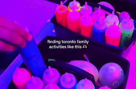 + The immersive paint splatter playground illuminates with standard UV light, creating a mesmerizing effect in the dark captivating a fluorescent glow.